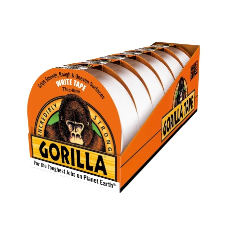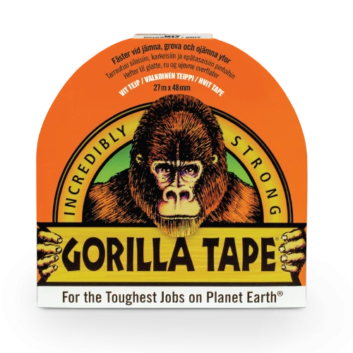 Gorilla Tape® Hvit er ekstra sterk, dobbelt så tykk og utrolig holdbar. Enten du må feste til rue, glatte eller ujevne overflater.
