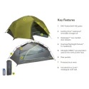 Elevating Experience, Lowering Impact The most livable backpacking tent in our line is now even roomier. Dagger OSMO features a pole structure that adds 4 inches to the door height, 2 inches to the peak height, and 22% more usable space to the vestibule when compared with the previous model. This maximized interior offers downright luxurious downtime in camp and comes at no extra weight cost. The updated hardware and poles are paired with solution-dyed OSMO™ fabrics on the fly and floor that promise 4x longer lasting water repellency, 3x less stretch when wet, and a 20% higher strength rating than similar fabrics. Made from 100% recycled yarns for reduced waste, this OSMO fabric also requires less water and energy for the dyeing process. These sustainability efforts combine to earn Dagger OSMO designation as a bluesign® product backpacking tent — the industry’s first at the time of launch. KEY FEATURES 1. More Livable Space A new pole structure increases the door, shoulder, and peak height for more comfortable downtime. 2. Stash™ Vestibule Strut Lightweight strut increases the usable space within each vestibule by 22% for better storage and maneuvering. 3. Improved Divvy Cube™ Updated rectangular case is easier to pack, fits more efficiently in backpacks, and can be easily compressed when splitting weight with a partner. 4. Elements™ Hardware NEMO-designed crossbar hub, corner hub, and Axial™ corner anchor are engineered for increased durability, an easier setup, and a sleek look. BEST USE Backpacking PAIR WITH Disco™ EP Down Sleeping Bag Eclipse™ All-Season Insulated Sleeping Pad Moonlite™ Reclining Camp Chair