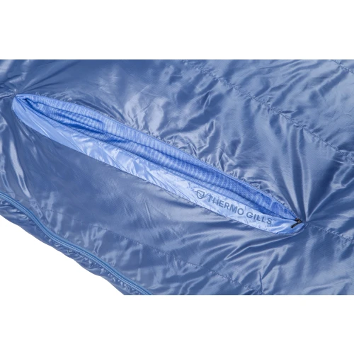 Disco includes a set of next-generation Thermo Gill™ vents on the chest to offer fine-tuned temperature control and a better outdoor sleeping experience. Each Gill features an interior and an exterior zipper with a draft-blocking intermediate layer, allowing several different configurations for dialing in the bag’s temperature without direct exposure to cold air. Our Blanket Fold™ draft collar at the neckline features a redesigned size and shape to further optimize sleep temperature. Tucked in, the Blanket Fold defiantly blocks any chill while mimicking the comfort of your bed at home. Pushed out, it helps dump excess heat instantly. Finally, Disco’s revamped design has baffles insulated with water-resistant, RDS-certified down, placed vertically along the torso for comfort and aligned horizontally below the waist to prevent down migration.