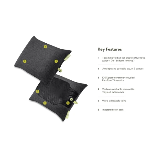 successful backpacking trip: quality rest. Fillo Elite is equipped with a baffled air cell on the inside to help it retain