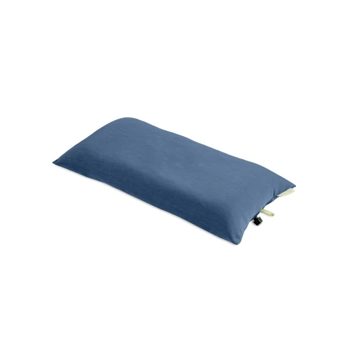 The interior features our baffled air cell structure to help it retain shape but is covered with a cozy layer of 100% post-consumer recycled Primaloft® insulation. An ultra-soft, machine-washable jersey cover is the final touch for a pillow that comfortably cradles your head with a width to accommodate broad-shouldered users, and pack size small enough for backpacking trips.