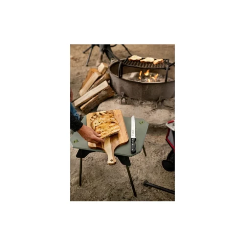 Rugged aluminum poles with zinc pole tips twist-lock into place to elevate to side table height. When not in use, legs lock into a storage area on the underside of the table for a tidy pack up. A smooth, impervious tabletop surface is heat-resistant and cleans easily. Moonlander comes with a sharply designed, padded case or fits perfectly in your pack’s laptop sleeve.