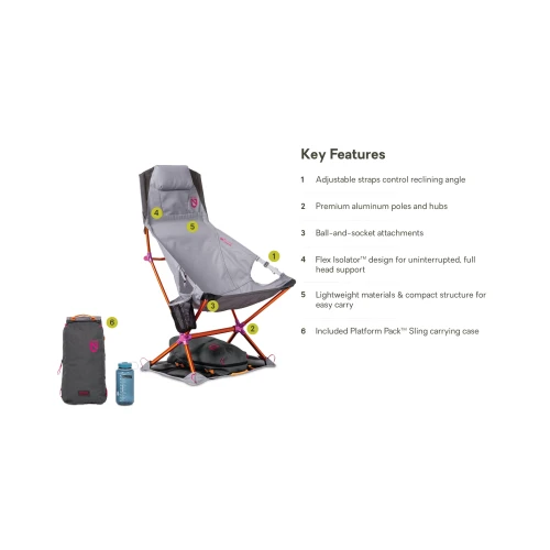 Satellite™ doesn’t just sit comfortably — it travels effortlessly. Packing down into a remarkably compact size, it tucks neatly into a NEMO Double Haul, the back of your car, a motorcycle side case, a kayak, or anywhere else space is at a premium. The included sling-style carrying case expands its utility, building on our Platform Pack™ technology by unfolding flat to pair with the chair and add stability on sandy or soft ground. A mesh cupholder integrated into the side keeps beverages close at hand, rounding out the details that make Satellite™ your go-anywhere lounge companion.