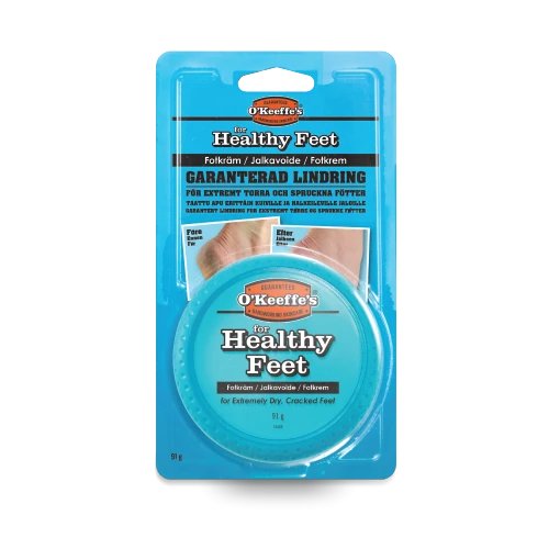O’Keeffe’s for Healthy Feet er en unik formel av fuktighetsgivende ingredienser som er garantert å forbedre tørr og sprukken hud. Tørr og tom jord trenger vann – og det samme gjelder for ru, tørr hud. Kremen etterlater ikke en klebrig hinne. Uparfymert, luktfri og allergivennlig.